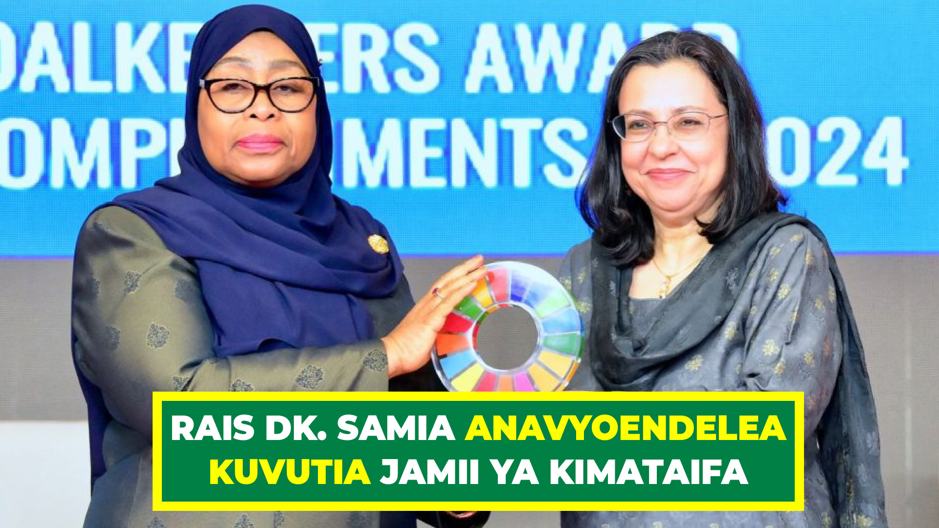 Tuzo nyingine, aliyopata Rais Dk. Samia, ile Maalumu ya Kimataifa ya The Global Goalkeeper Award kutoka kwa Rais wa Kitengo cha Usawa wa Jinsia wa Taasisi ya Gates, Dk. Anita Zaidi, Februari 4, 2025.