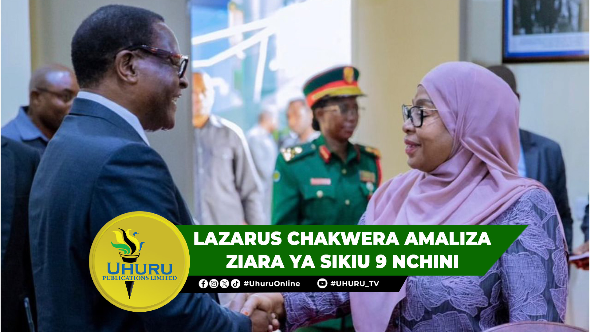 MJUMBE Maalum wa Katibu Mkuu wa Jumuiya ya Madola ambaye pia ni Rais wa zamani wa Malawi, Lazarus McCarthy Chakwera ameondoka nchini Aprili 16, 2026, kupitia Uwanja wa Ndege wa Kimataifa wa Julius Nyerere (JNIA) na kuagwa na viongozi waandamizi wa serikali wakiongozwa na Balozi wa Tanzania nchini Uingereza, Mhe. Mberwa Kairuki, baada ya kumaliza ziara yake ya kikazi ya siku 9 nchini Tanzania.
